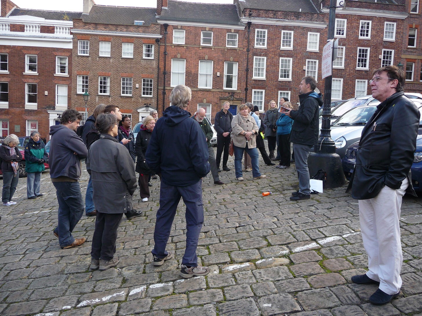 We've presented some interesting and memorable events in galleries, chapels and poky, creaky pubs, but I think we're at our best when we're working outdoors: making notes, taking photographs, or gathered in a collective act of walking and speaking and listening.