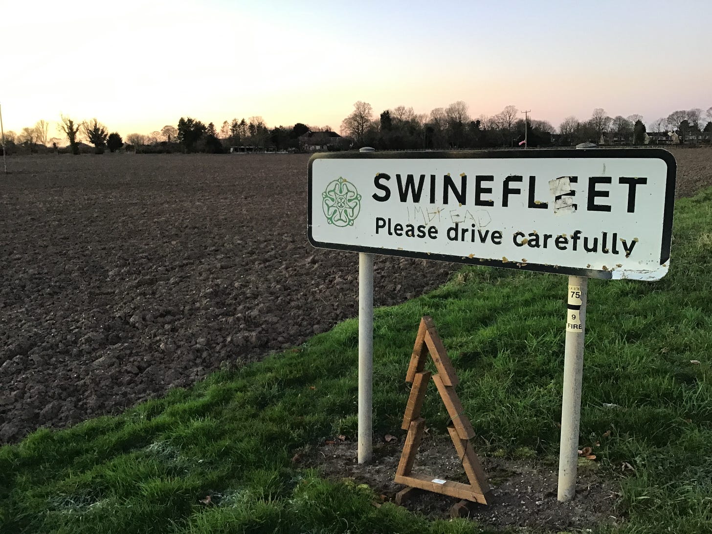Seven bells chime. As I near Reedness I pass a lorry driver closing a farm gate. He is cheerful and friendly and greets me warmly. He tells me of his journey, how it started several hours ago, in Bridlington, black ice, poor visibility. Happy new year, he says, and turns left at the church.