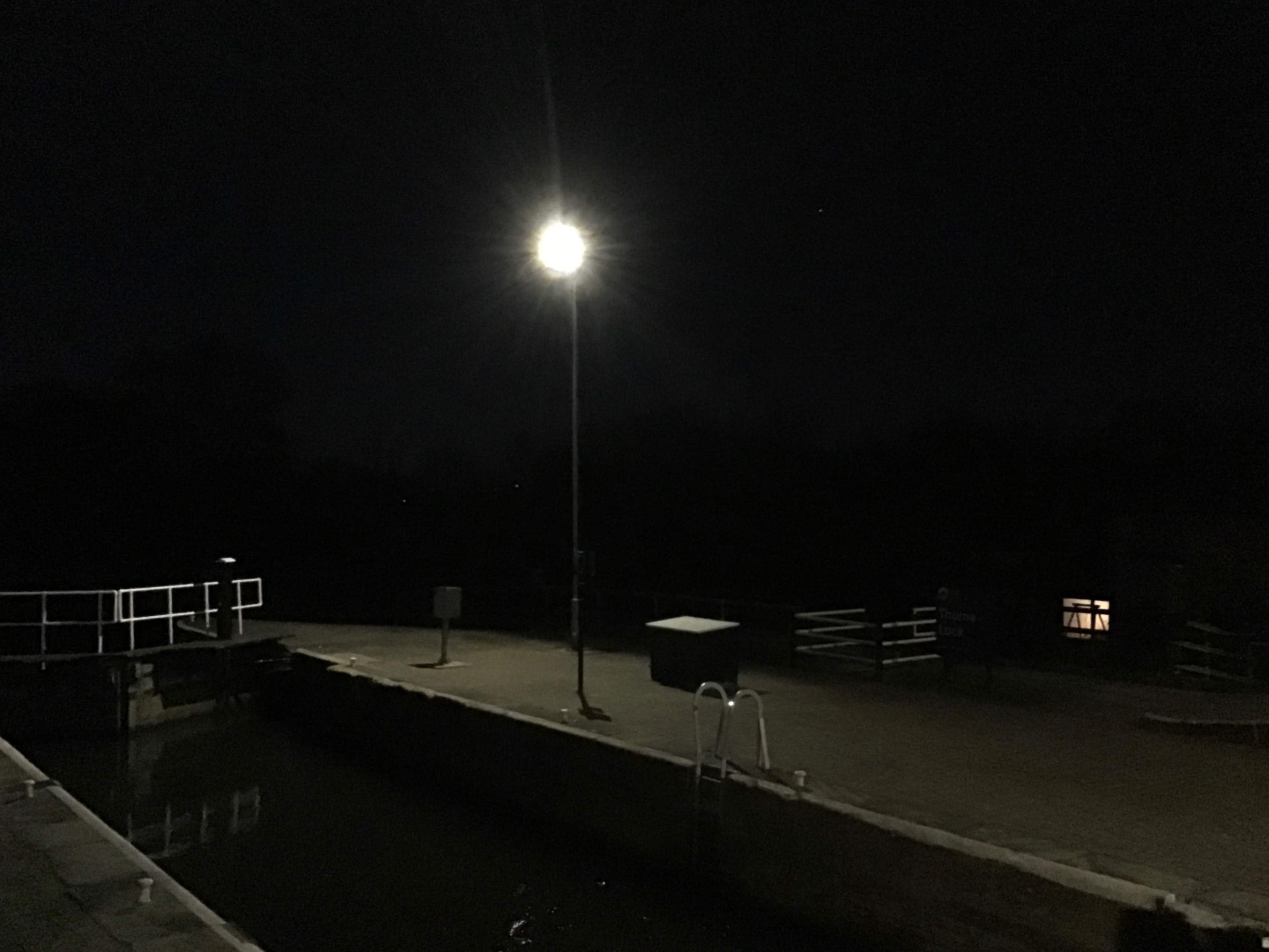 9.50pm. Unblinking flare of riverside properties, spilling into empty gardens, searching the water, flooding the south bank. No motion sensors, trips or timers. Full glare. Dusk till dawn. It is hard to think with the blaze of LEDs. It is hard to read the path ahead.