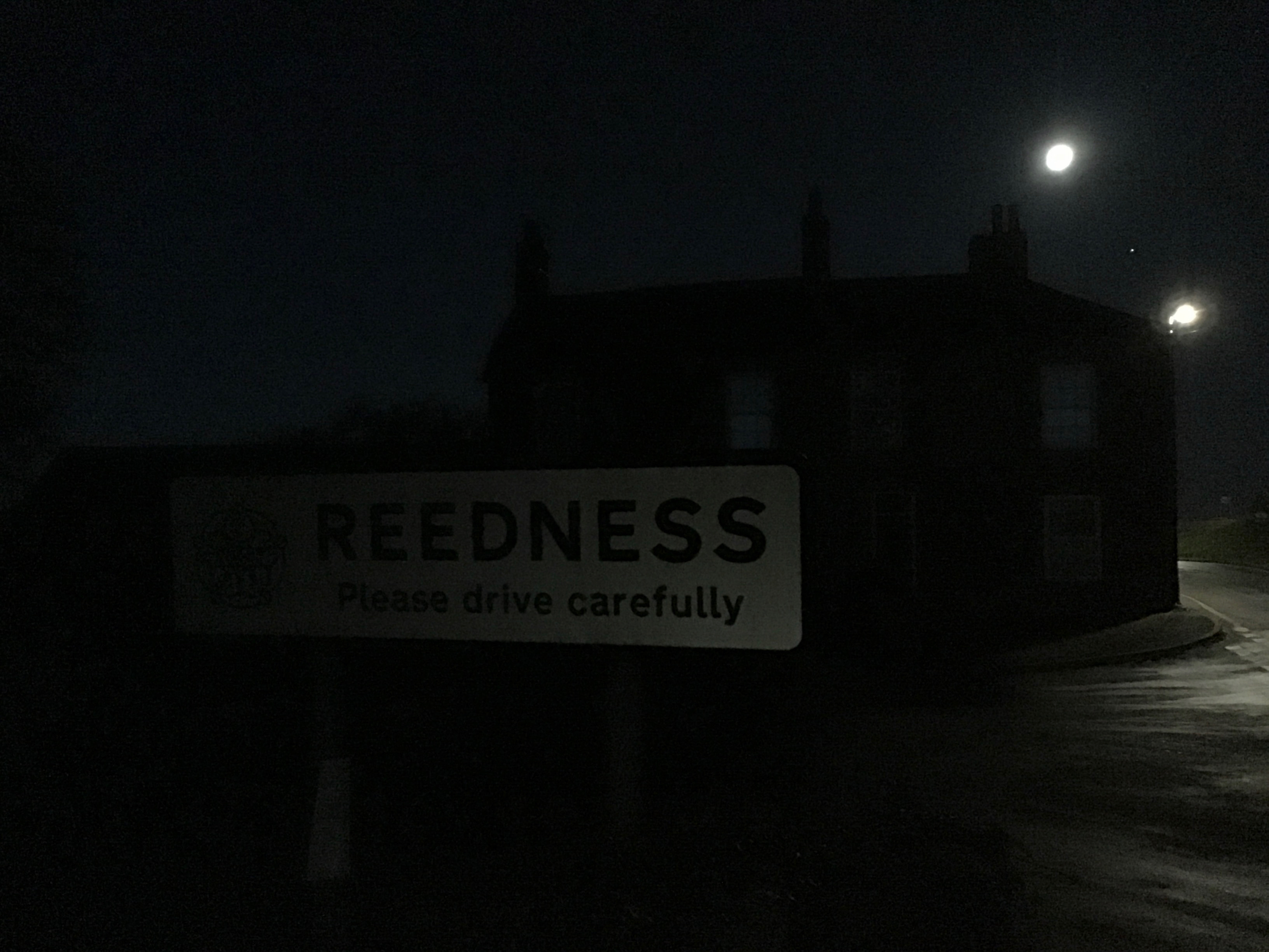 A car from nowhere on my left, heading north, then west, Blacktoft and the causeway. The first vehicle to pass me since Amcotts. Rear lights slow to burn out. A half-familiar sound on the right turn. A half-familiar sound on the left turn. 5.45am is cockcrow in Adlingfleet.