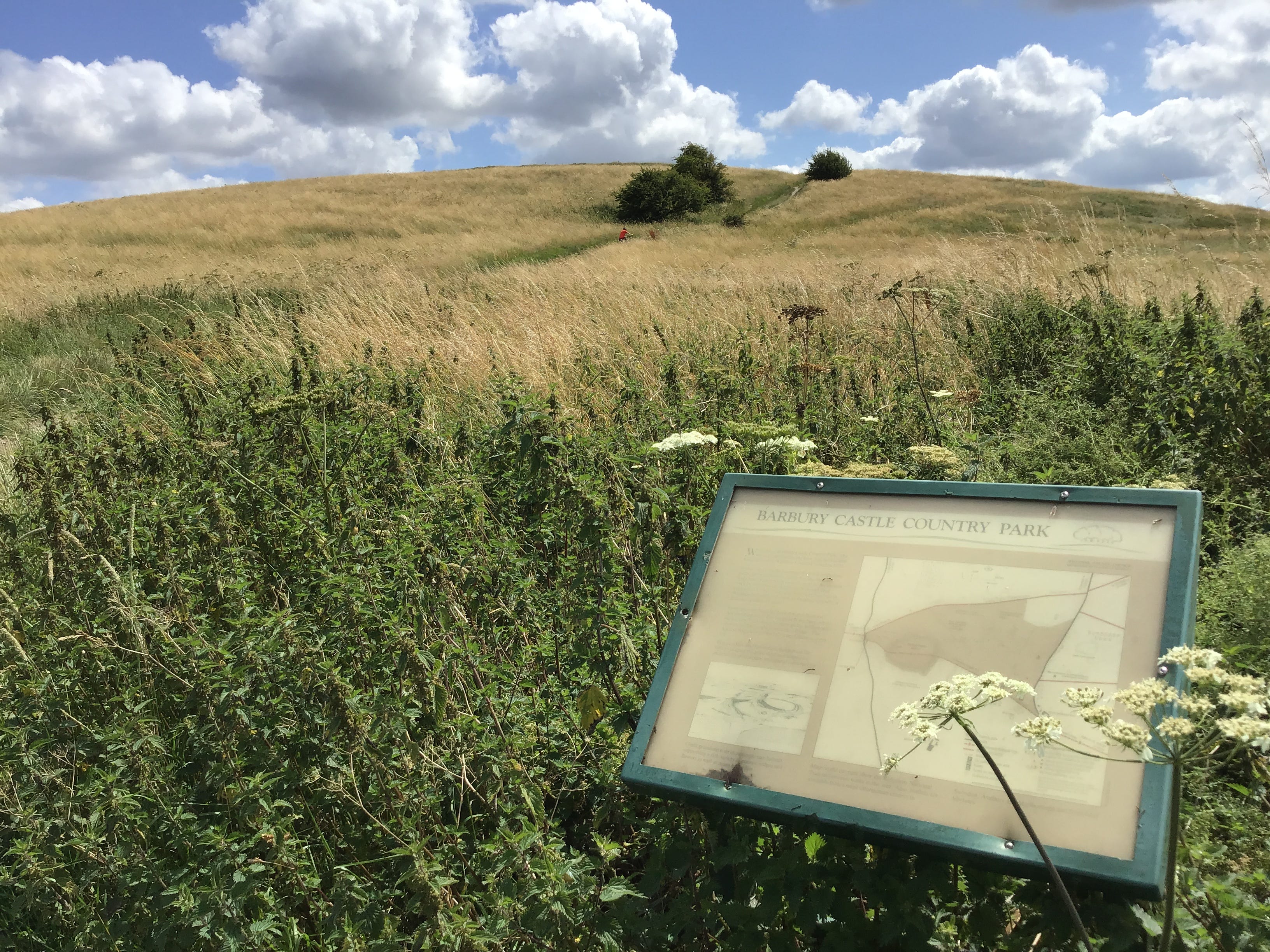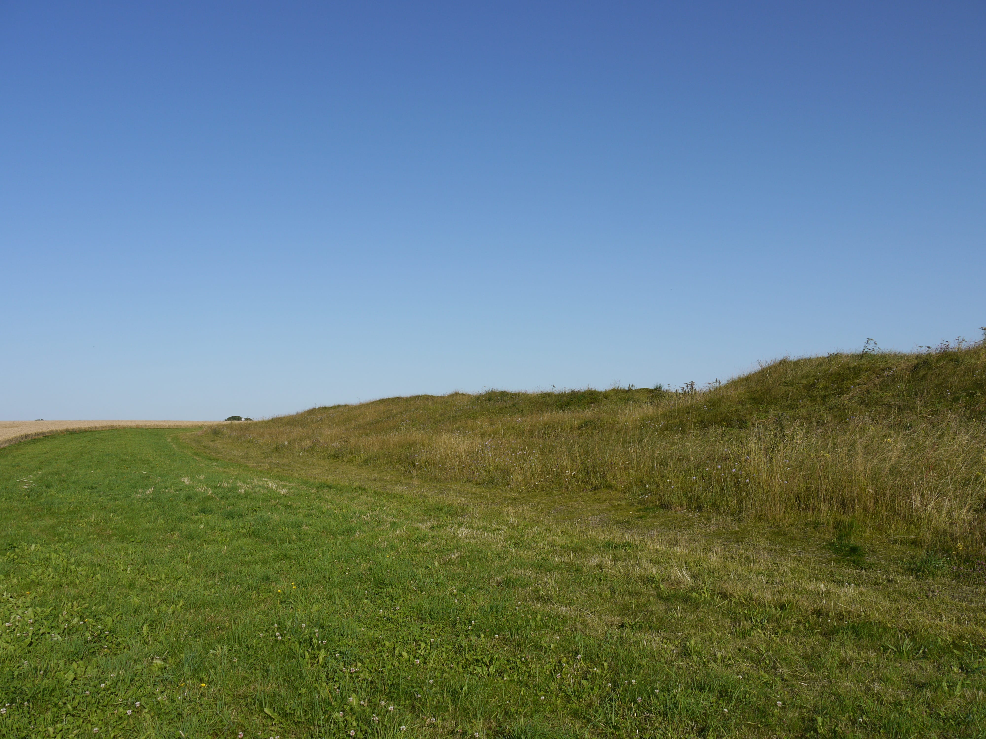 We would have made our way here by car, as with most English Heritage sites, how else would you get there. Bishopstone and Ashbury and the signs for the car park. The white horse on the north flank. I can't see it from here. I descend to the ditch then climb to the rampart.