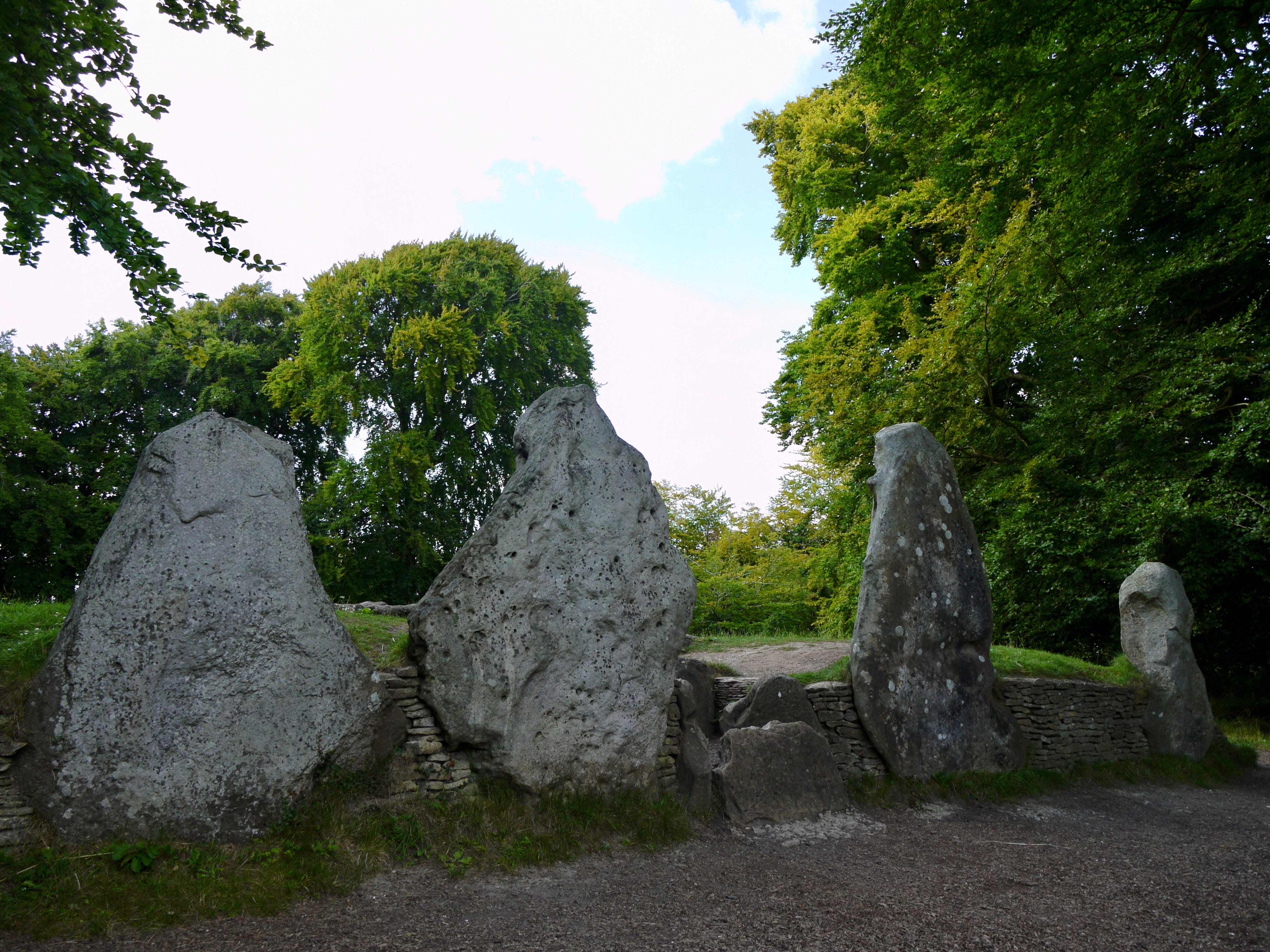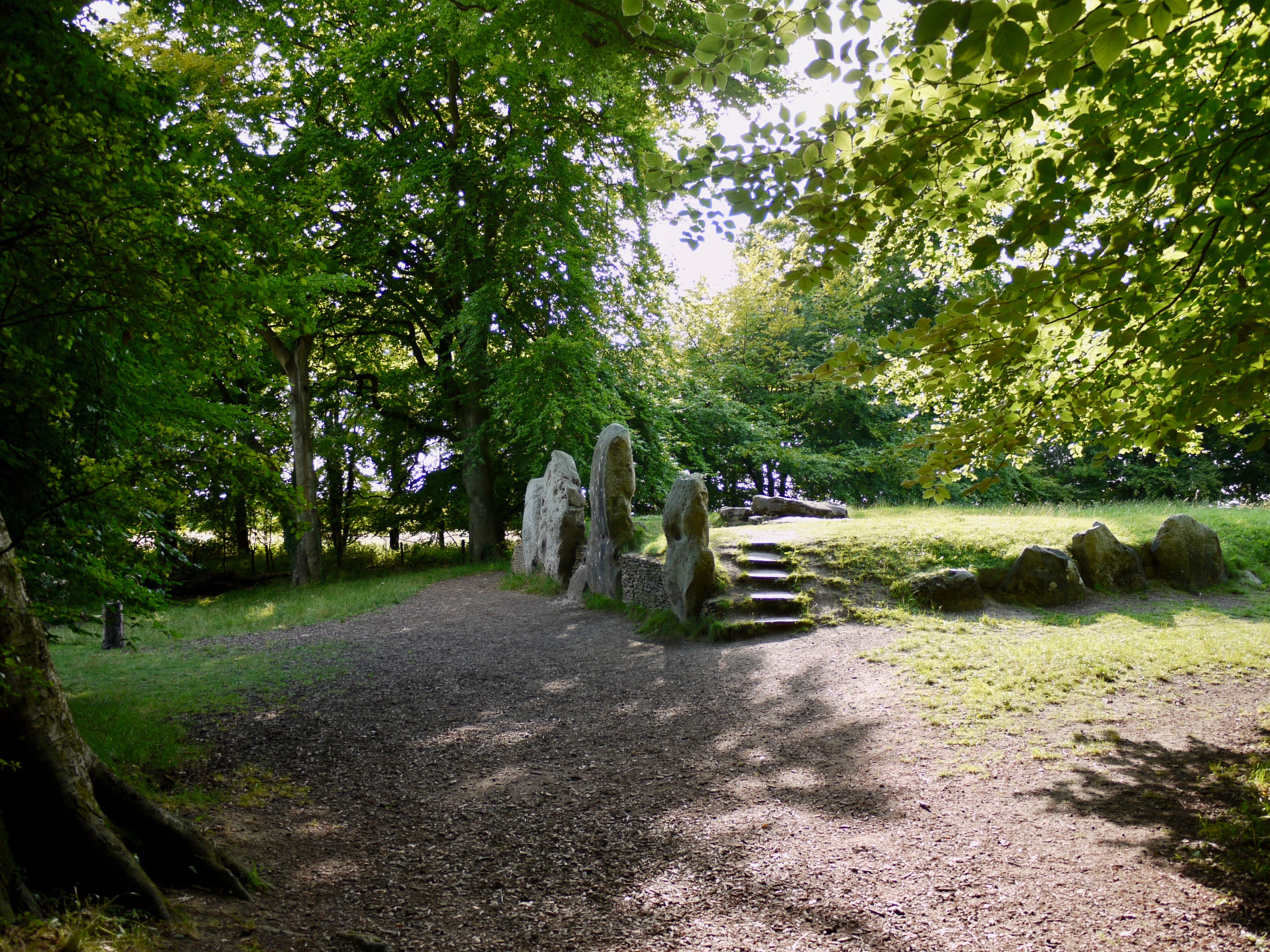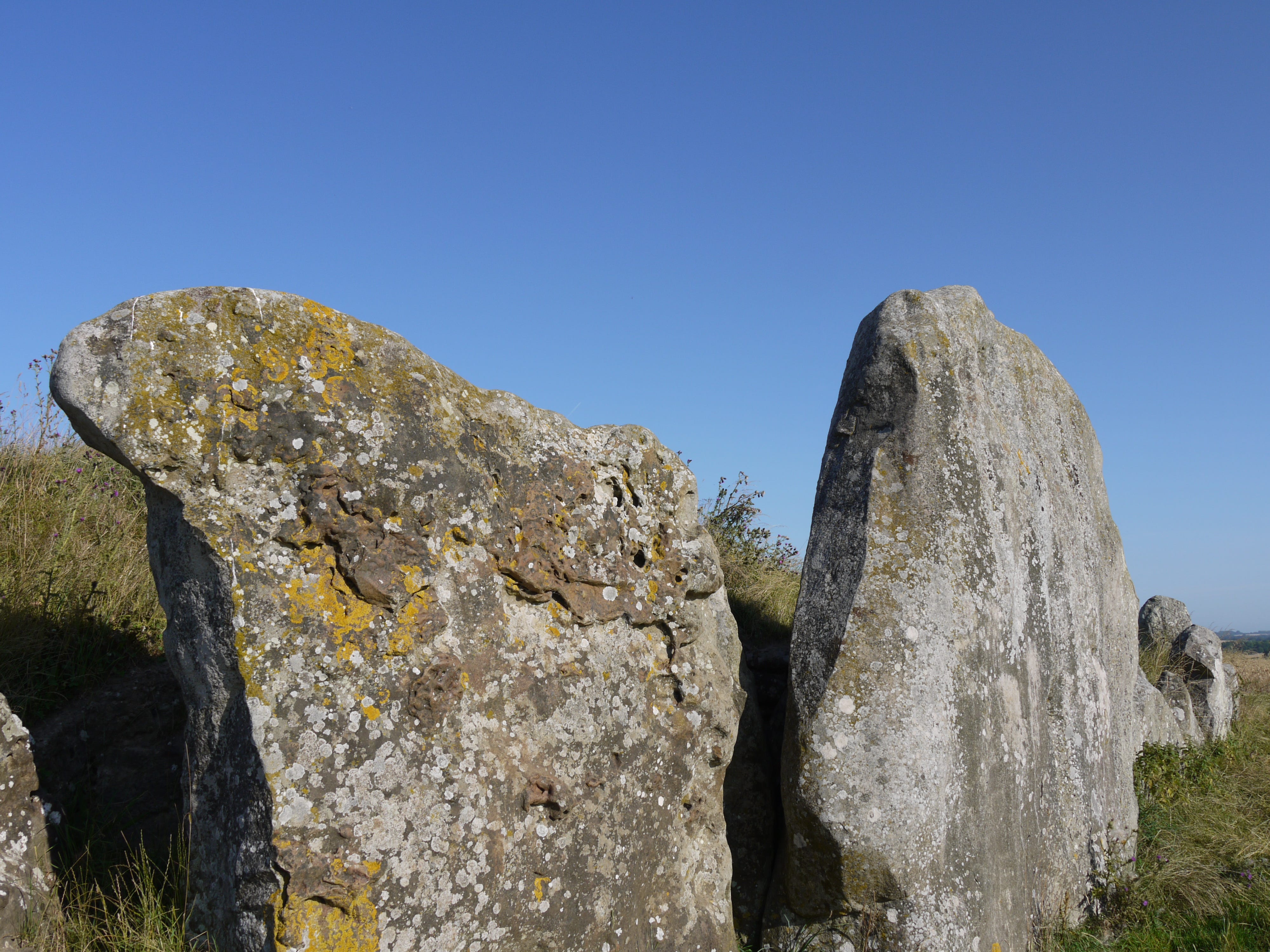 8.15am. I gather up my things and prepare to leave. As I emerge from a gap in the blocking stones, two small boys, their mother, and their grandfather appear. The boys climb the steps at the side of the barrow and race to the end of the tumulus. Their mother calls after them.