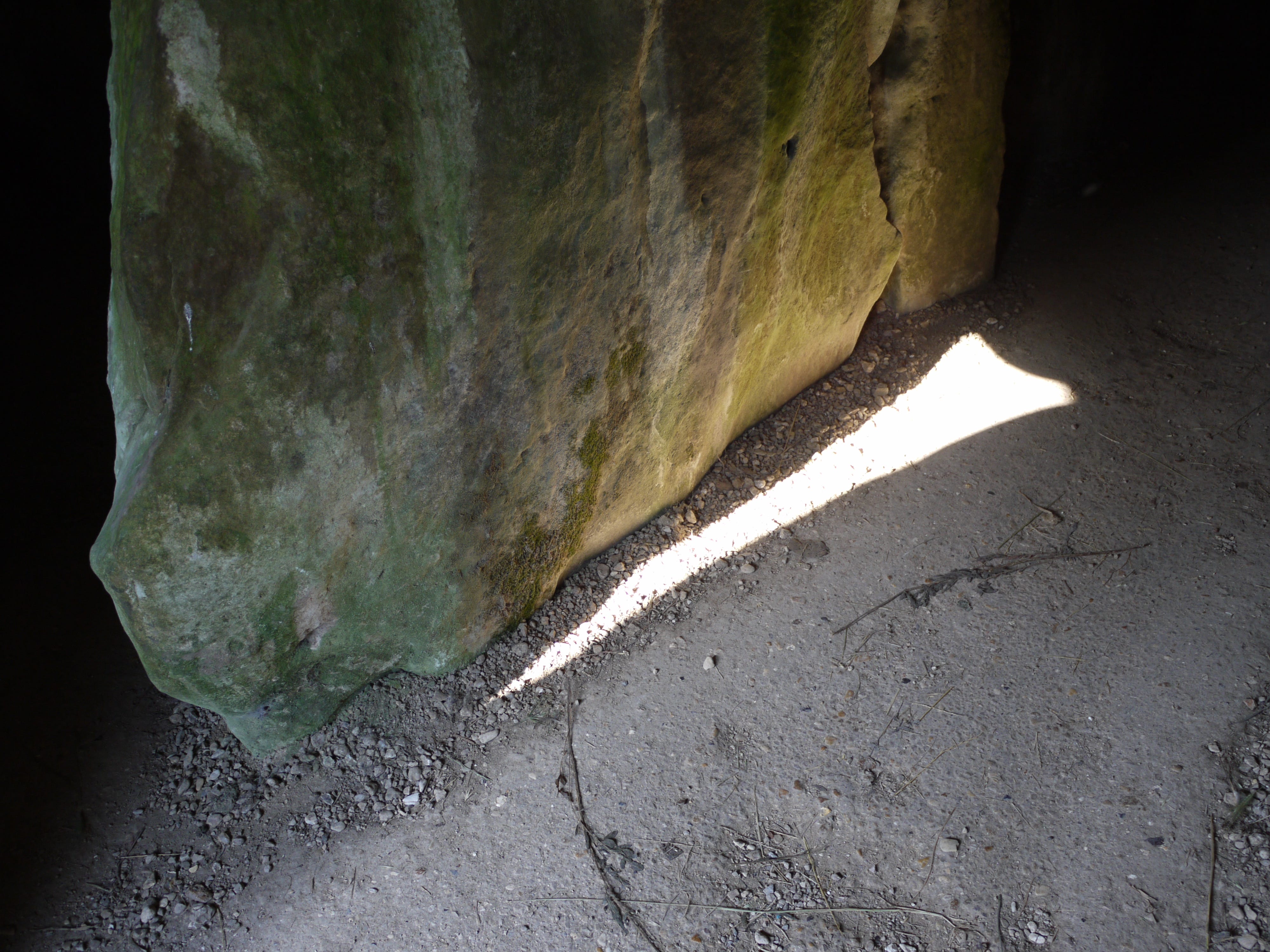 The light takes its shape from a gap in the blocking stones and prints itself on the floor of the barrow. Time passes. The light holds its shape. It's an old shape. Old as the oolites. Solid as the sarsens. It has minutes before the sun's arc, or a passing cloud, peels it away.