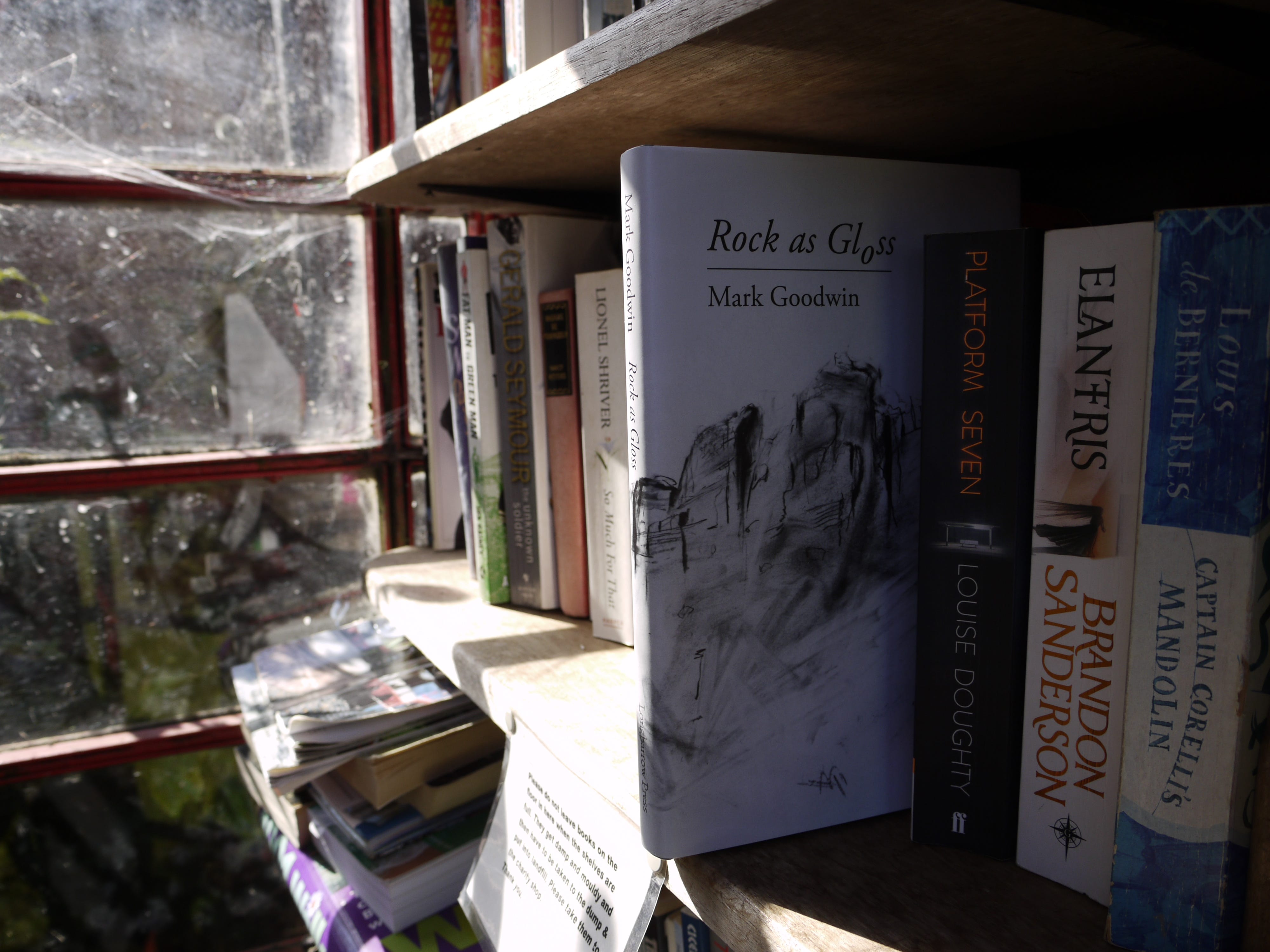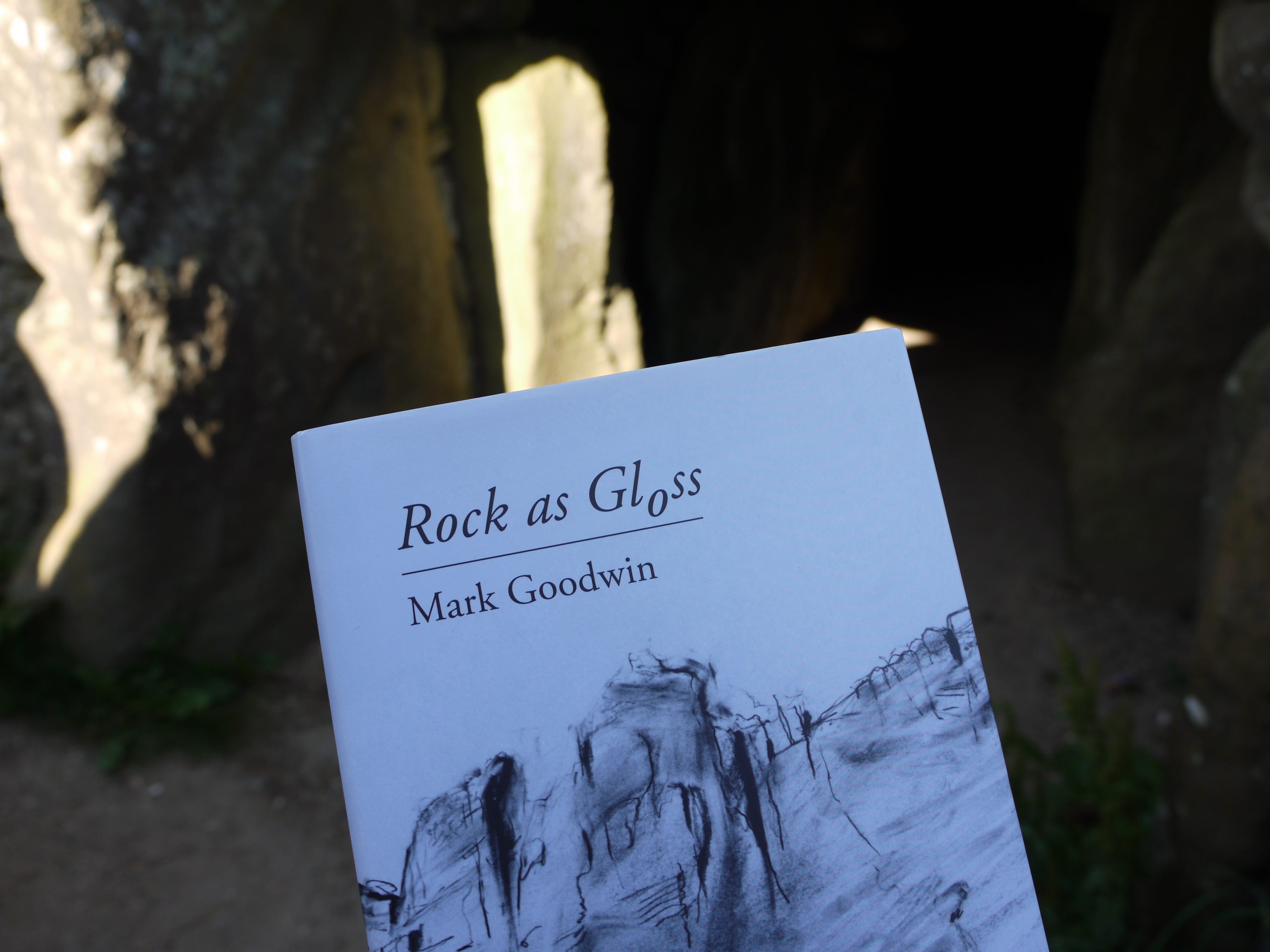 Rock as Gloss, Mark Goodwin (Longbarrow Press, 2019). The press was named for this barrow, not by me, but by Andy, the press's co-founder, it was one of several names I put forward, almost unthinkingly, he picked it out, without hesitation. 8.10am. I hold the book to the light.