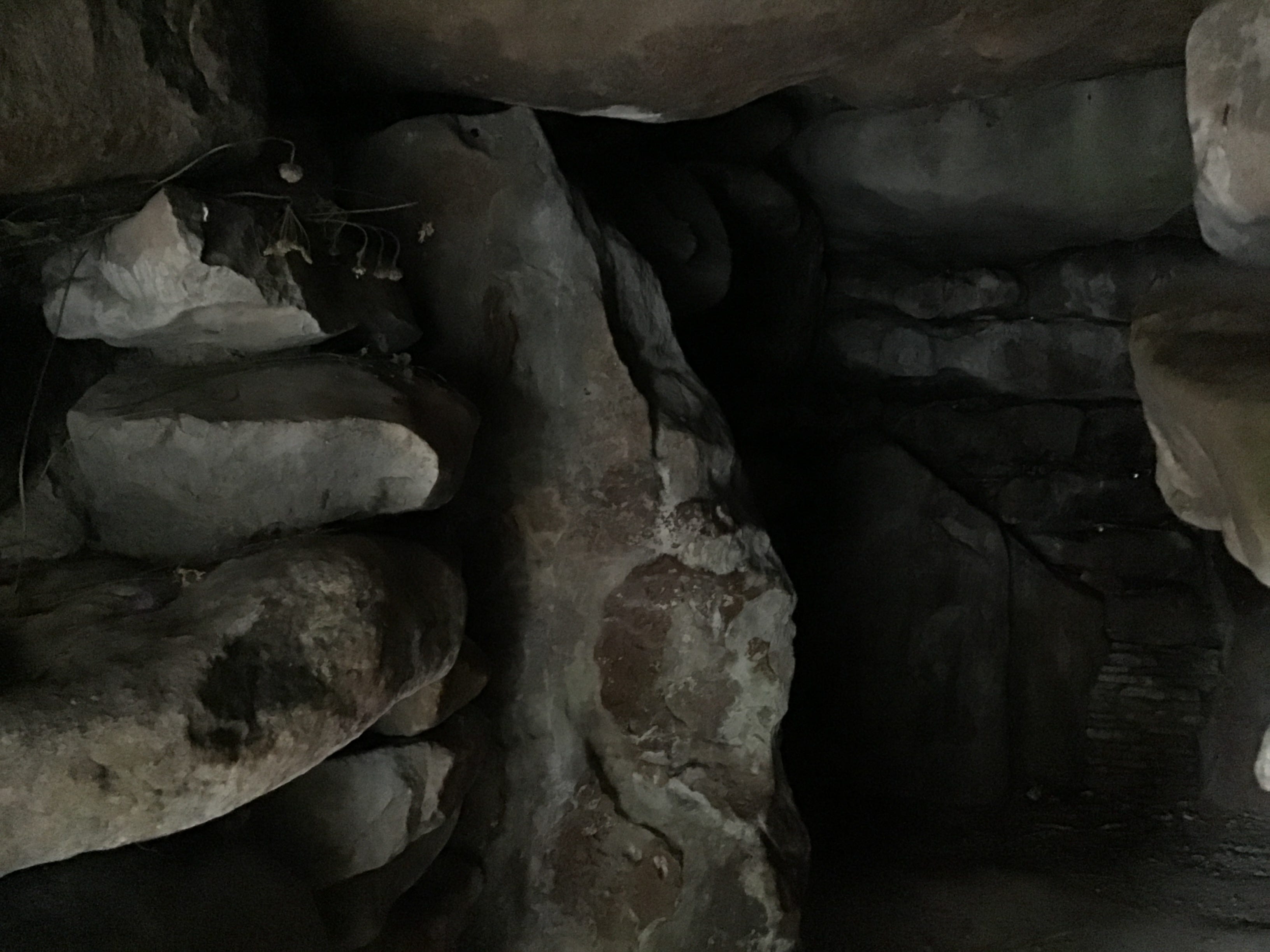 The chambers are built from sarsens and limestone and darkness, tempered, at this hour, by light at the entrance and two small lightwells set into the roof. The roof is high enough to allow visitors to stand upright. I seem to take up no more space now than I did when I was small.