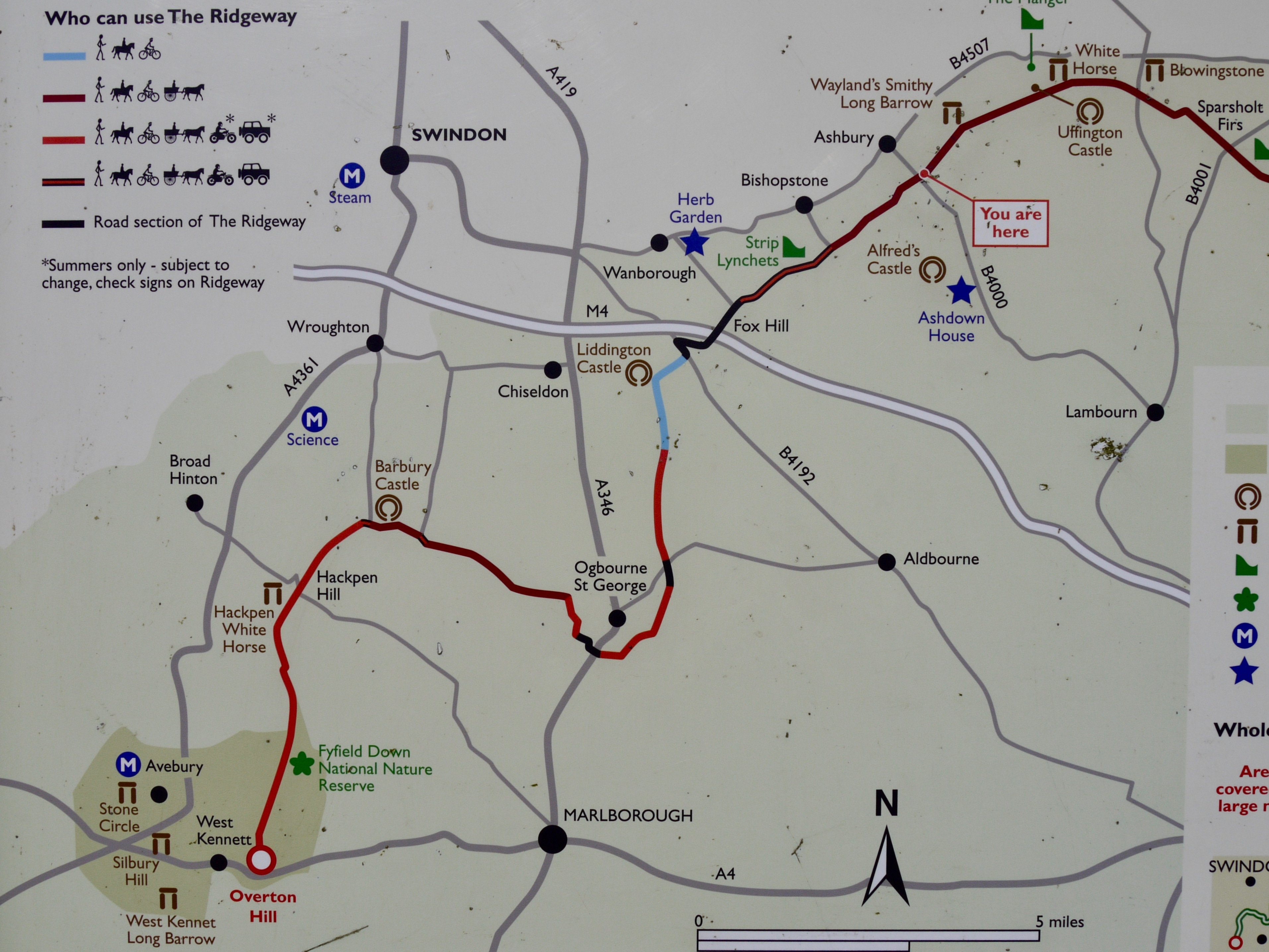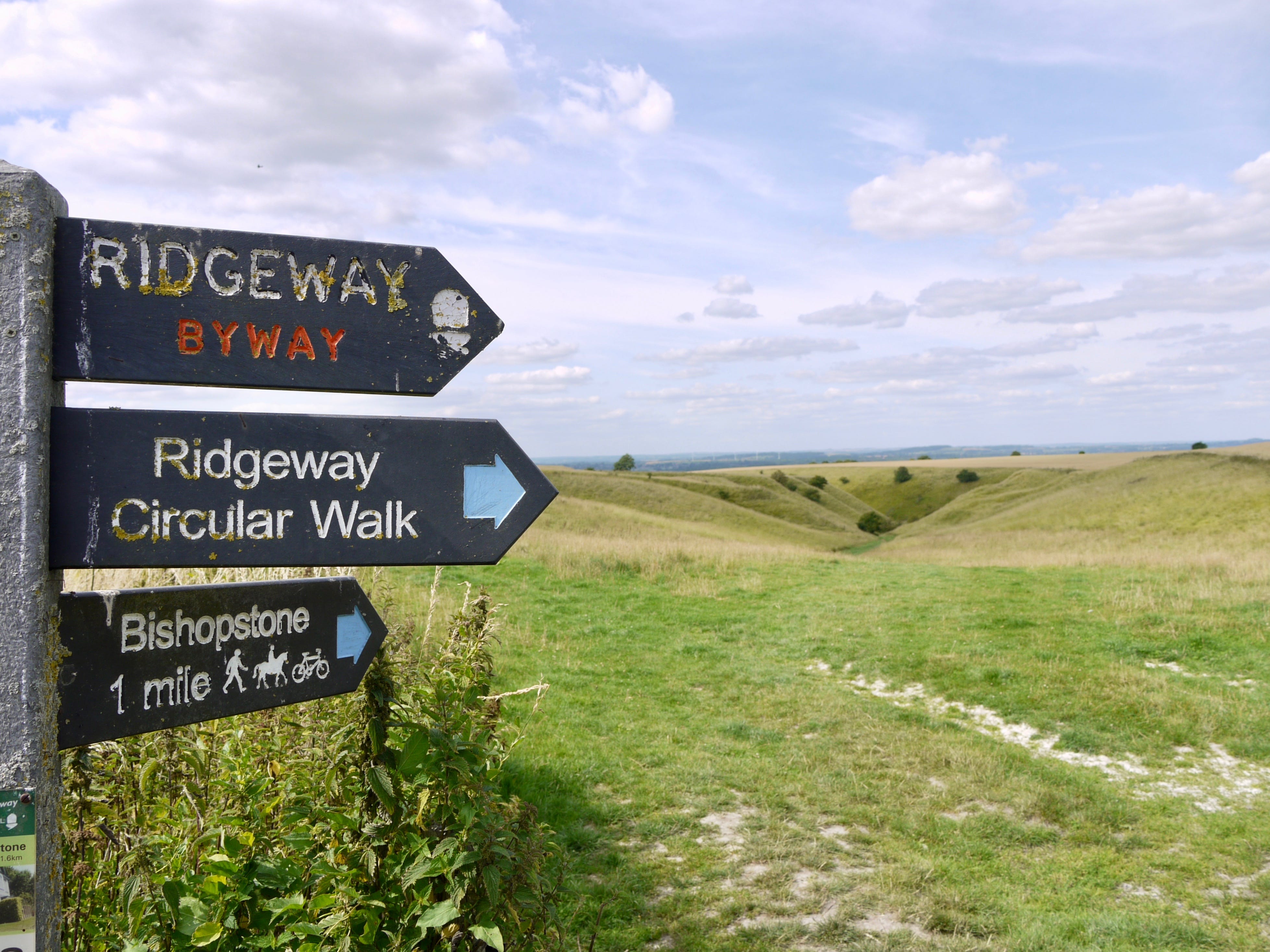 9.55am. Overton Hill. The trail arises from nothing, a car park at the edge of the A4, basic signage, no facilities. Two or three vehicles and, at the far end, two men talking over each other. All I see is the path ahead. I don't even notice the round barrows in the east field.