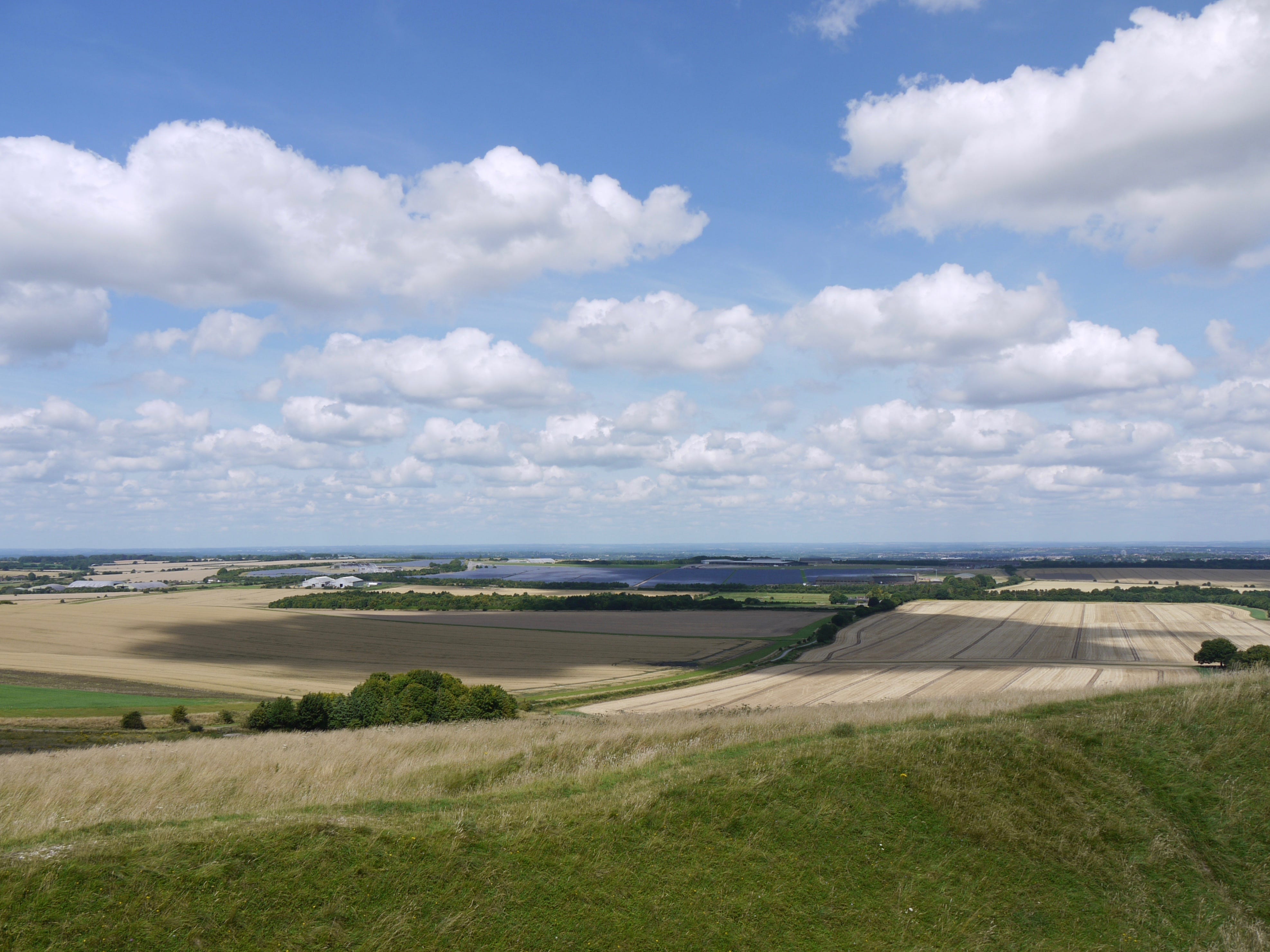 I make a circuit of the north ridge, stopping to photograph a cloud-shadow to the west, the shadow drawing level with a solar farm in an adjacent field. The long path to the car park, a man cradling an exhausted dog, a woman spreading a blanket on the grass, come, children, sit.
