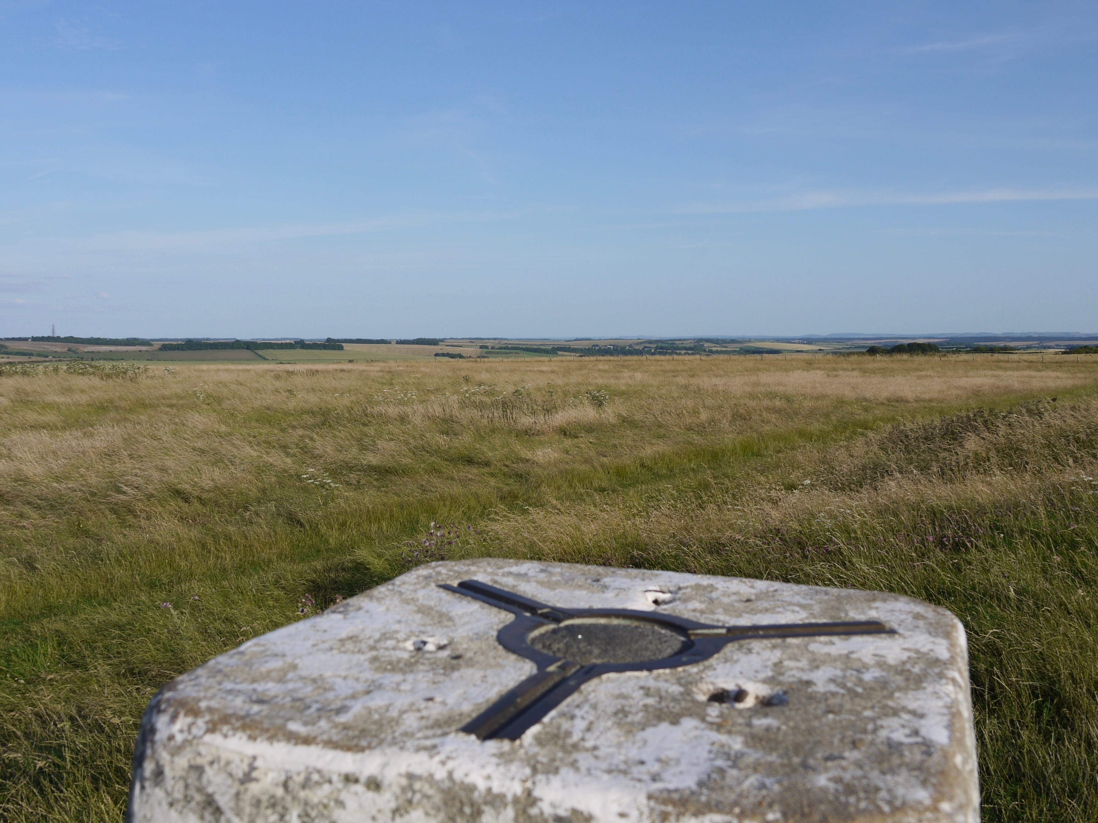 Nothing from the rampart. People make circuits of the Iron Age hillfort, in silence, in conversation, working things out in the evening air. I turn back and take two quick snaps of the trig point. A small boy races ahead of his family and declares I AM THE KING OF THE CASTLE.